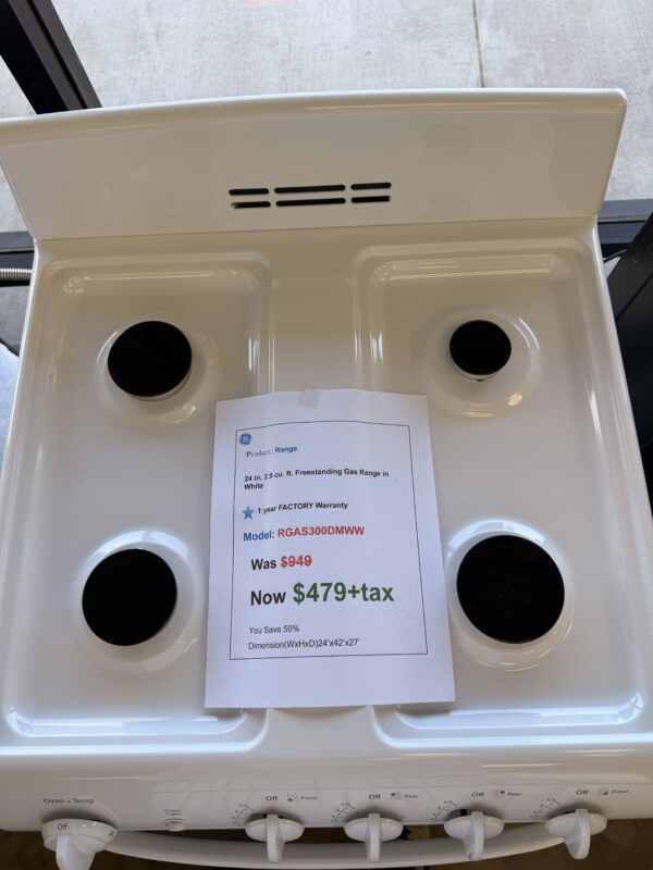 24 inch 2.9 cu.ft. Freestanding Gas Range in White